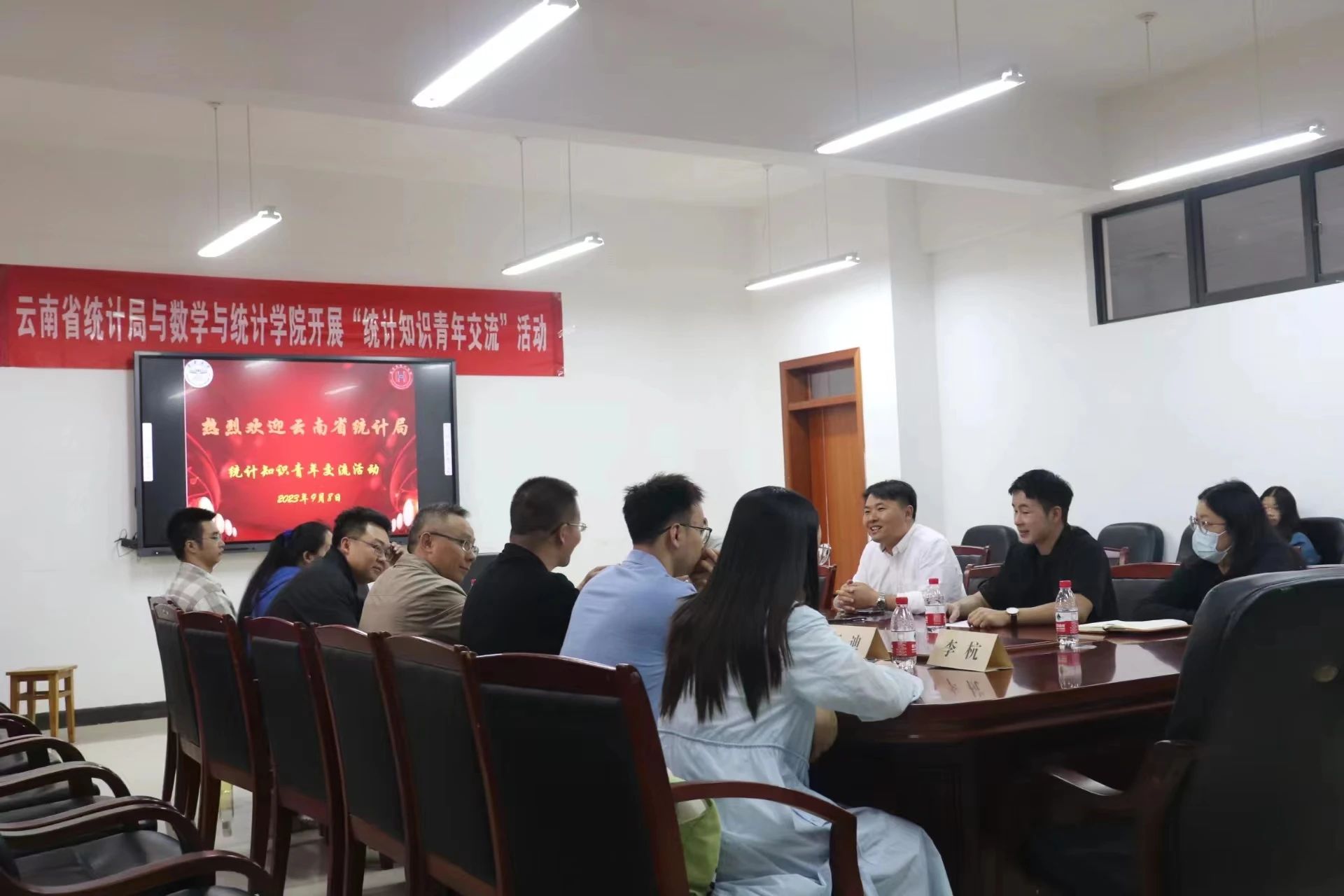 参观校史馆结束后,云南省统计局人事处副处长彭先友、省统计局雷建冲、邢茂源等7名青年干部,与公司副经理潘东东老师、学工办主任鲁学伟老师、学院团委负责人侯廷明老师、罗敬老师、王蔓琦老师及学院团委员工干部、2020级本科生、2021级研究生开展此次统计知识青年交流和毕业生就业指导活动座谈。